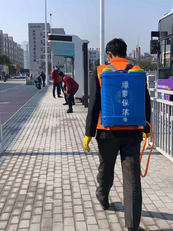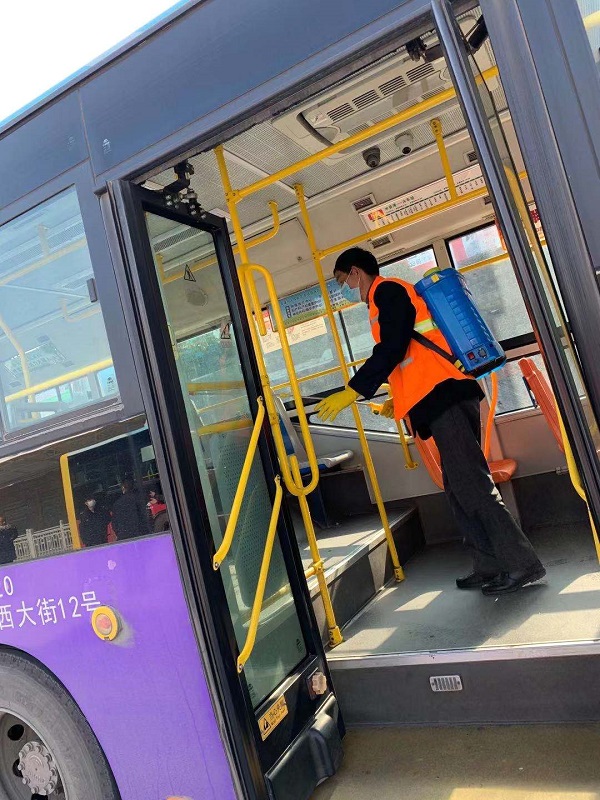 安排專人對(duì)公交站臺(tái)、車輛內(nèi)部進(jìn)行消殺滅菌工作